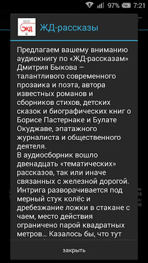 We bring you the audio book for the "Train-stories" Dmitry Bykov - talented contemporary writer and poet, author of famous novels and collections of poems, fairy tales and biographical books of Boris Pasternak and Bulat Okudzhava, flamboyant journalist and public figure.