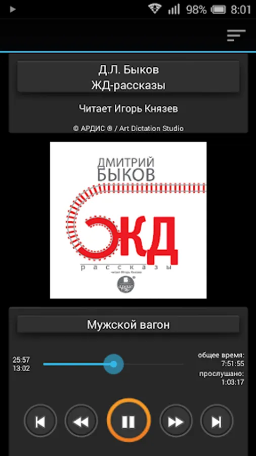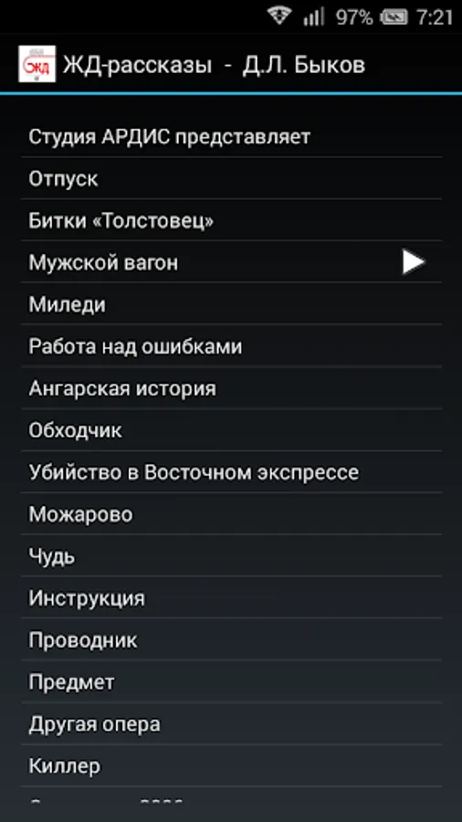 In audiosbornik became twelve "thematic" stories, in one way or another connected with the railway. The intrigue takes place under the rhythmic sound of the wheels and the rattle of spoons in a glass of tea, place of action is limited to a couple of square meters ... It would seem that there may be an exciting and unusual? However, before you storehouse of exciting plots and a real encyclopedia of genres - romantic story, household satire, ironic detective fiction dystopia, mysterious horror ...