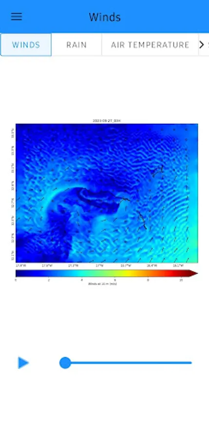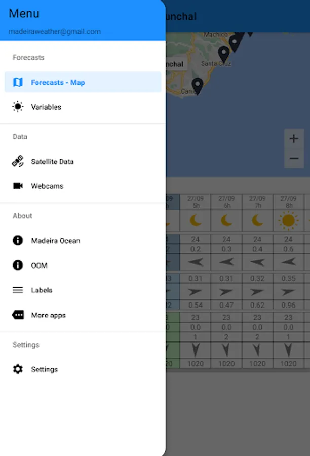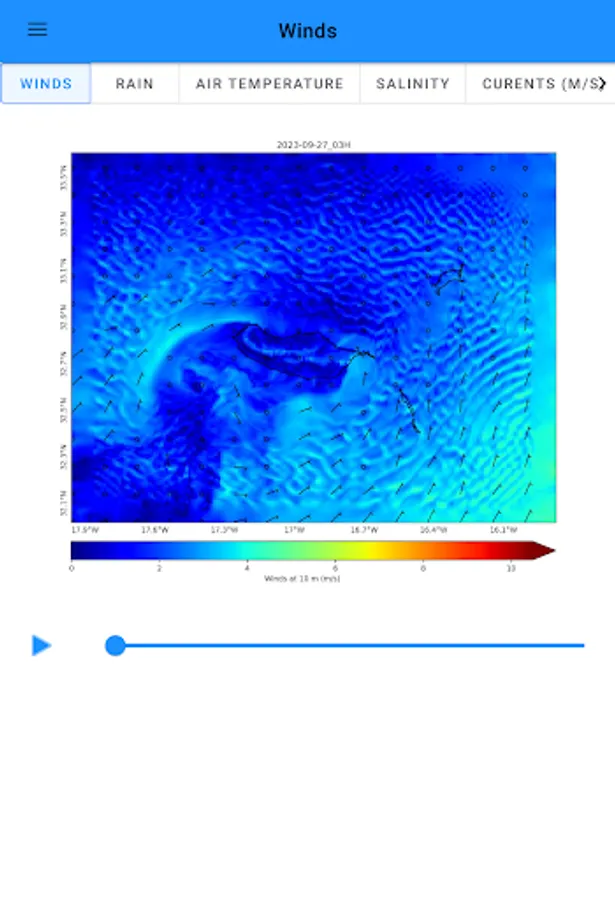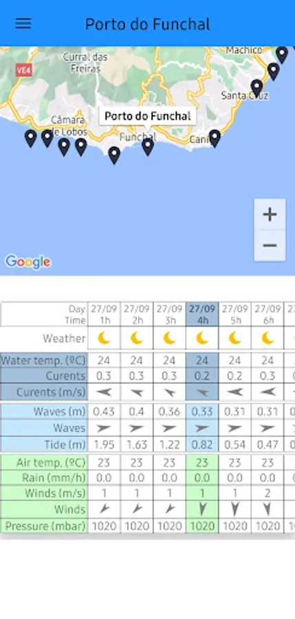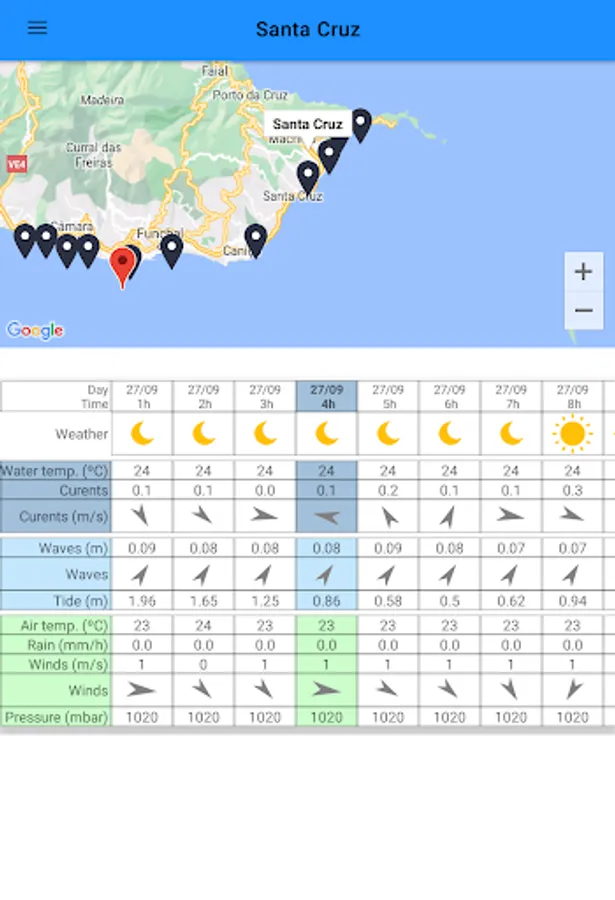 In this app you can check the forecasted data for air and water temperature, direction and speed of currents, waves and tides, plus precipitation, winds and atmospheric pressure. All these variables are available for more than 30 points around the island, with forecasts for every three hours.