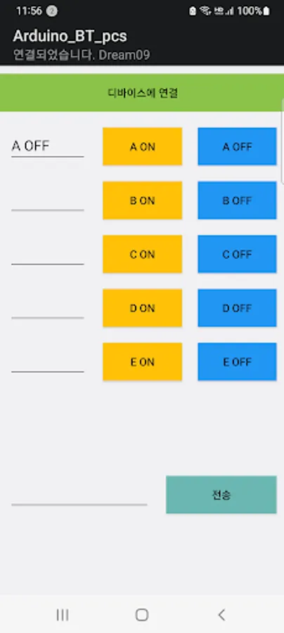 Mount the Bluetooth module on the Arduino board, connect the Bluetooth communication between the mobile phone and the Arduino by operating this app on the mobile phone, and then press various buttons provided in the mobile phone to recognize the button presses on the Arduino and perform the desired operation. app that lets you