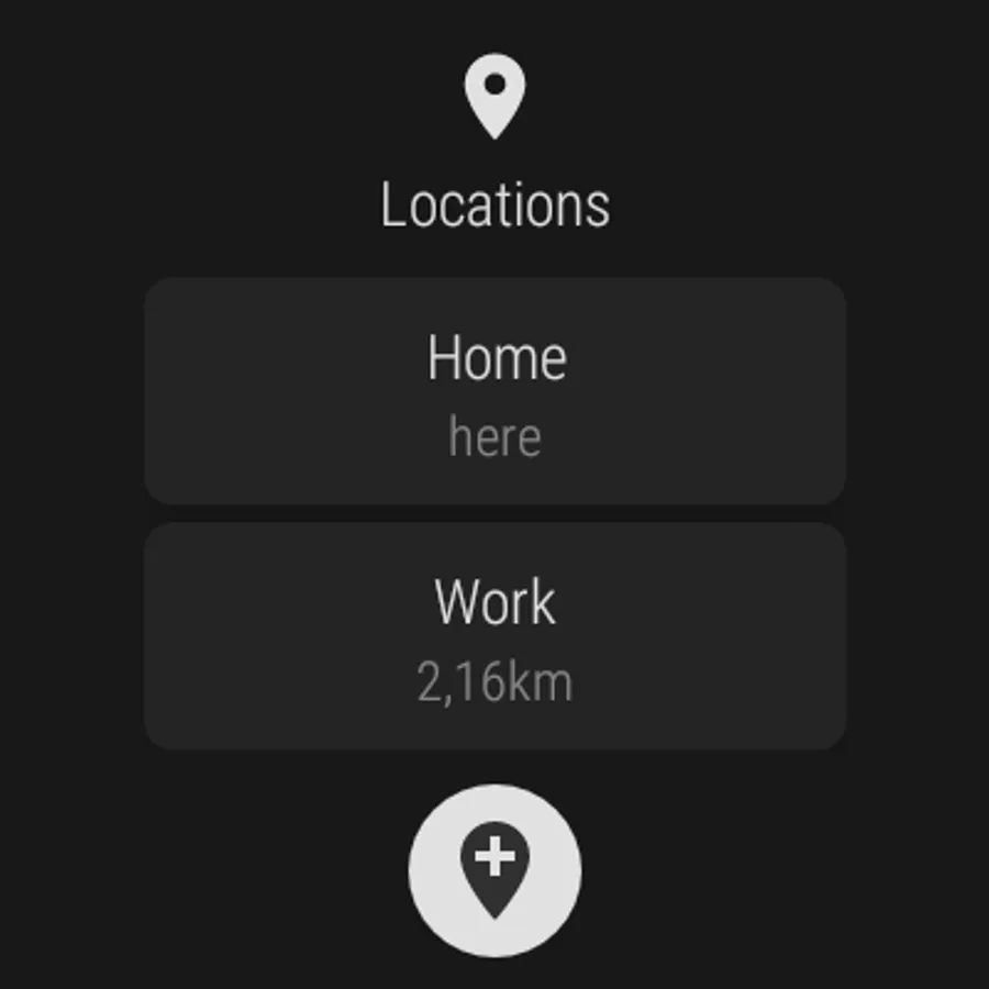 The app requires GPS data from either the watch or the phone to detect and display locations.