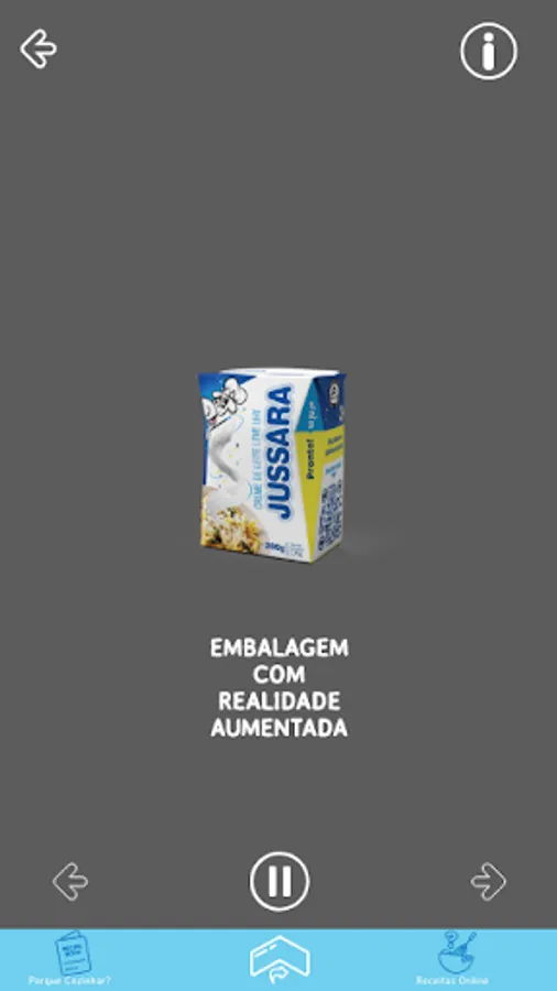 This application allows the visualization of videos of recipes in augmented reality, in the new packages of Milk Cream Jussara.
