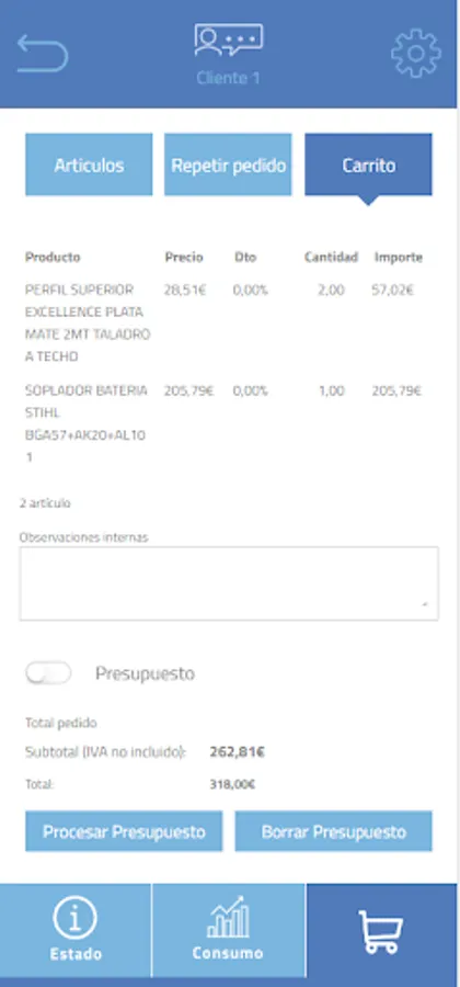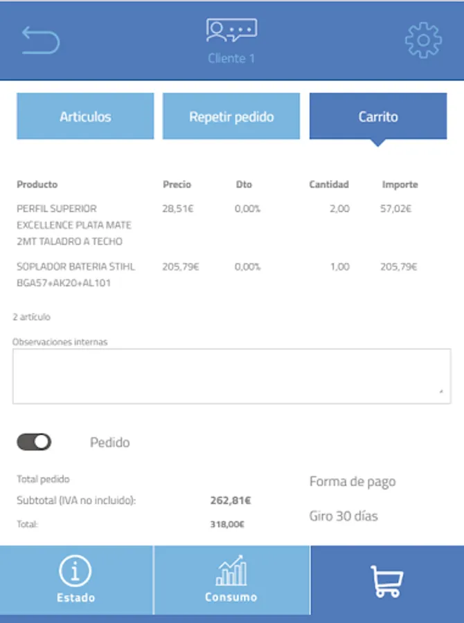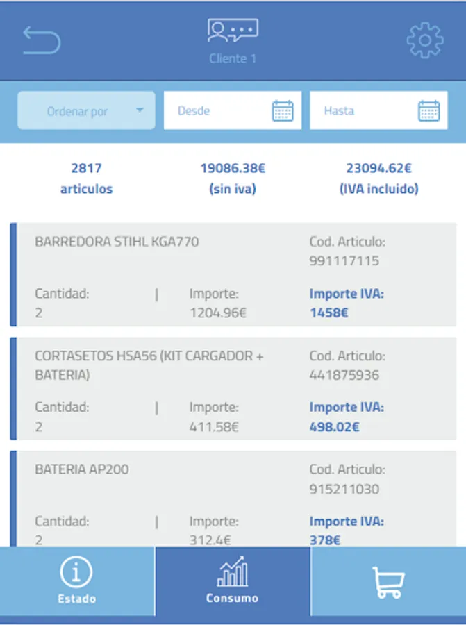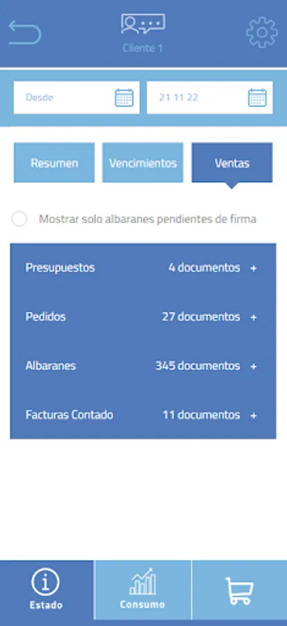 With this application you can view the status of your customer in Integral Control, view your consumption list and sign delivery notes.