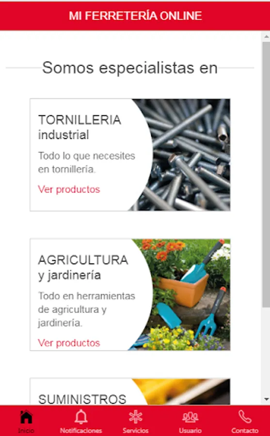 Application for purchases via the web miferreteriaonline.es and to learn about the offers and loyalty points each customer.