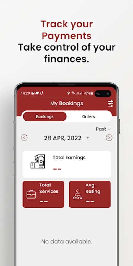 Use the “Bookings” to check your Request History and “Wallet” to track your earning and make withdrawals.