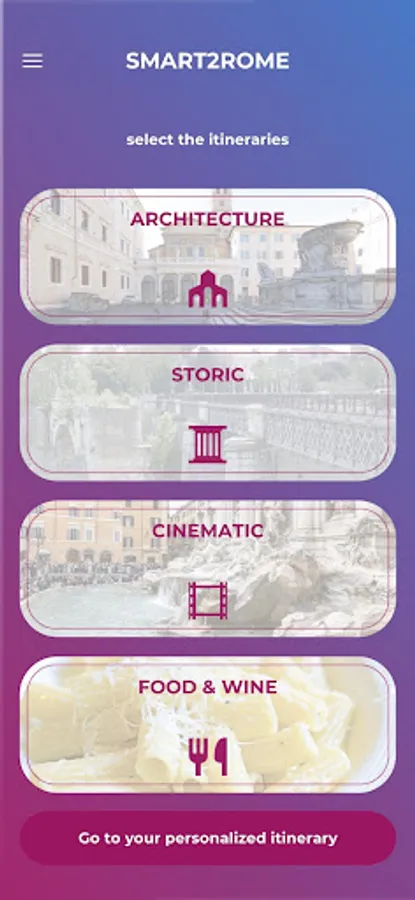 The App SMART2ROME is the technological touristic guide that can support visitors and tourists of Rome. Downloading the App, the visitor will have suggestions and recommended routes inside a triangle that includes the district of Testaccio, the one of Sant’Angelo and the area of Trastevere. This area has an urban fabric full of historical evidences of different ages full of strong emotions that will be made even more suggestive by the app, which, thanks to the combination audio-image will show you the most interesting episodes of the classical history, but also of a more recent past. The option 360 is also very interesting because it allows you to use the detailed guides. Close to the sightseeing place, thanks to augmented reality, pointing the webcam of your smartphone at the frame, the directions related to the points of interest closer to you will appear on your display.