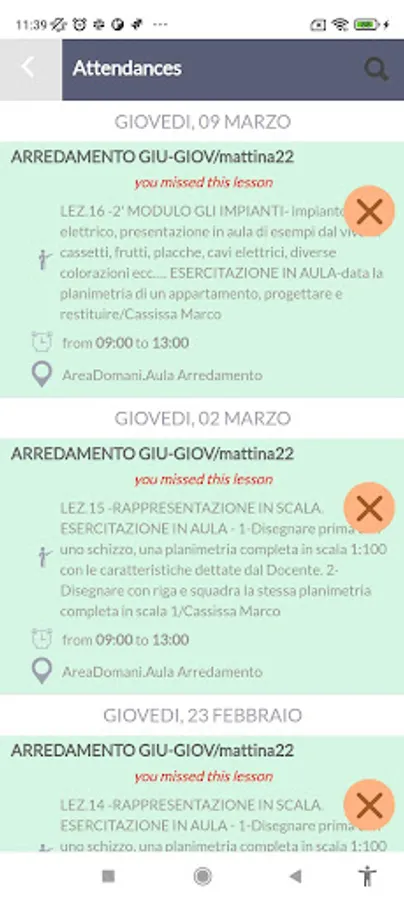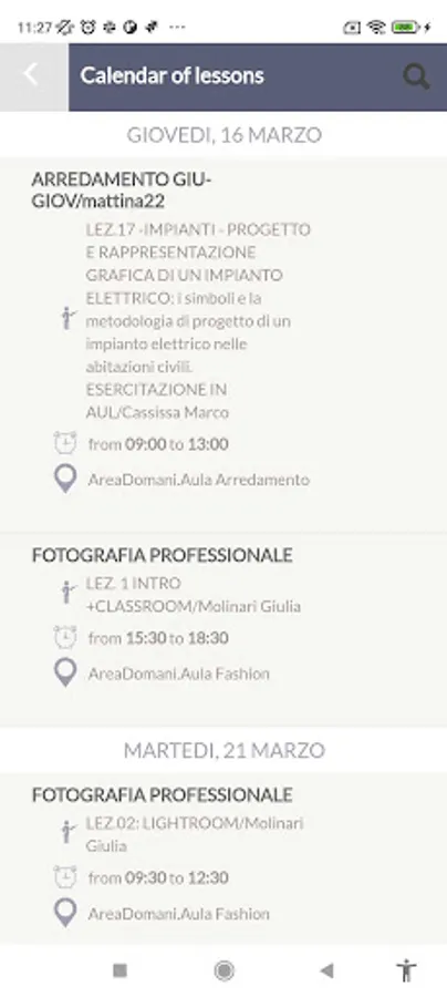 AreaDomani course management app