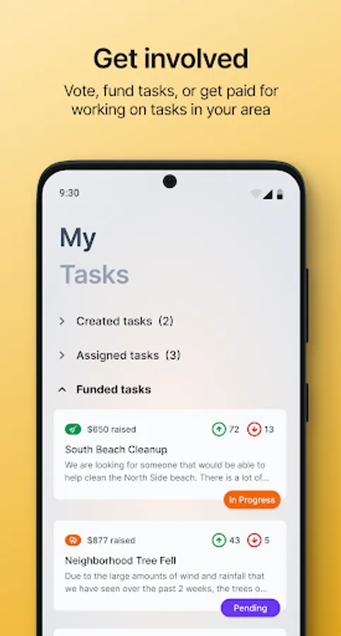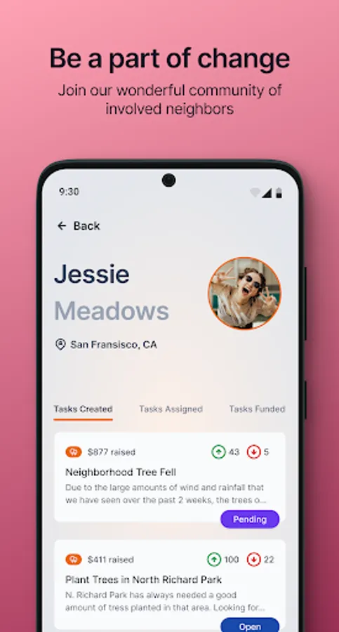 Neighbors will vote on the tasks that matter the most to help prioritize the work to be done, and they can also support a task by adding funding to it. Other neighbors can then decide to work on those tasks and get paid the raised amount.