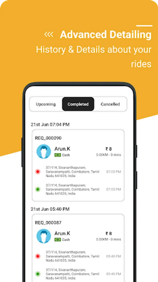 When customer book a ride, booking with riding details will be viewed in your Aredo Driver APP screen.