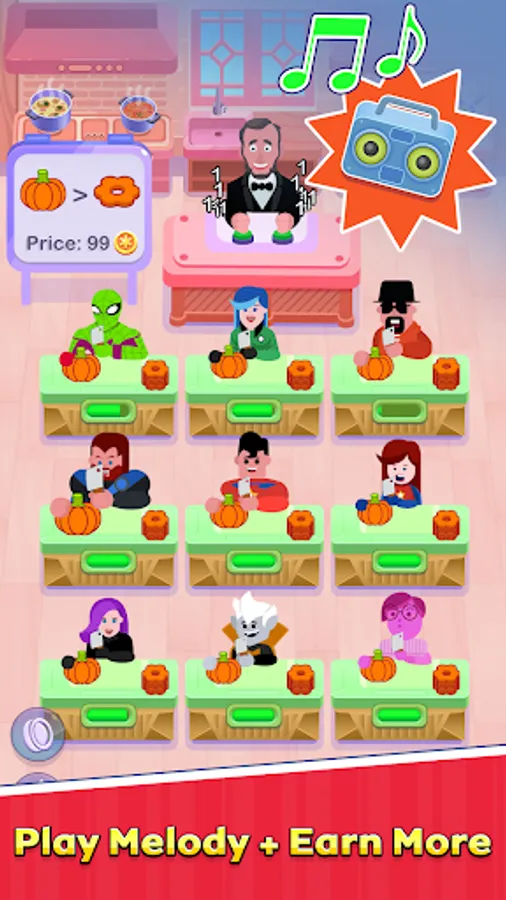 You will see a weird restaurant with lazy bored cookers that you never seen before. All your restaurants are managed by a special boss who knows how to make more food out of his chefs.