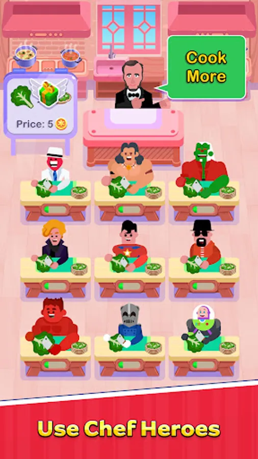 Don’t forget to cheer your chefs up, make them cook more for you. There will be some bosses to boost these lazy chefs.