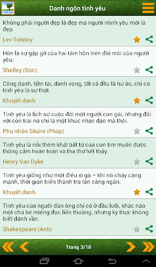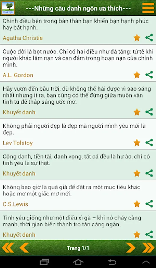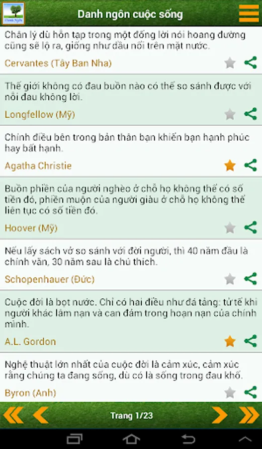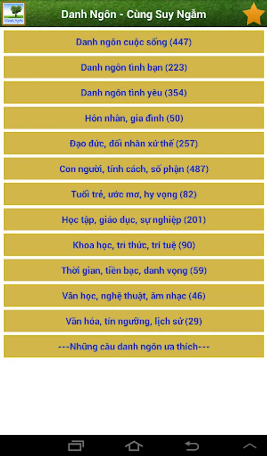 Danh Ngon suu tam tren 2,000 cau danh ngon hay, dac sac voi 12 chu de chinh: