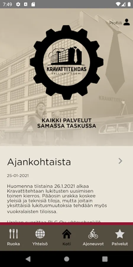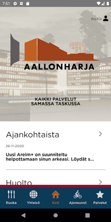 The Areim + application contains e.g. current press releases and news, key contact information, booking links for conference and other facilities, service descriptions, up-to-date lunch lists, links to the e-bike booking system and a discussion forum.