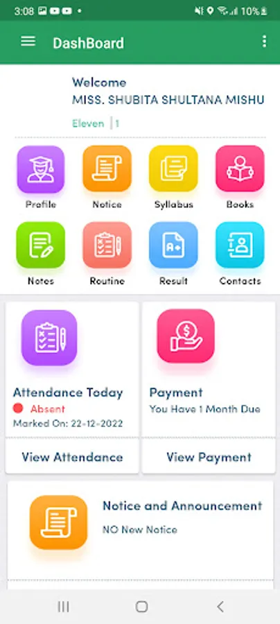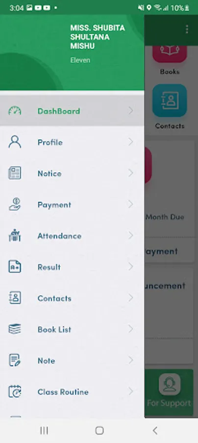View profile: Profile will show the basic information about the student. Suppose photo, name, class, roll & guardian info.