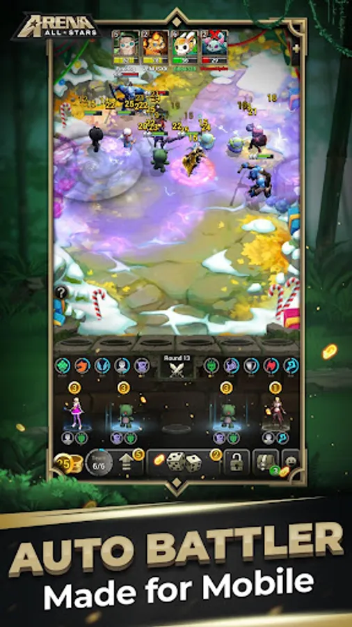 Arena Allstars adapts your favorite auto battler features and improves your mobile gaming experience in a couple of ways: (1) fast-paced action and shorter game rounds, (2) vertical orientation screen, (3) bigger characters/icons, and (4) optimized user interface and controls.