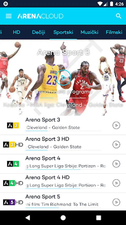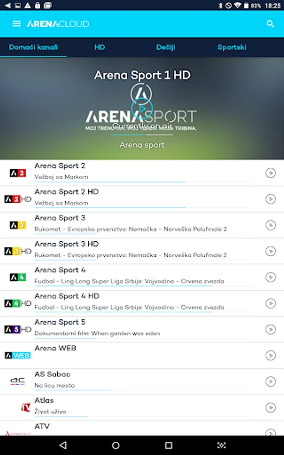 Enjoy Arena Channels Group TV channels with Arena CLOUD app – exclusive sporting events, the best movies and series, the latest music releases, a world renowned news channel specialized for events in Serbia and the region, the best regional travel programs, agricultural news. A group of unique cable channels, all in one place.