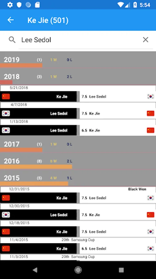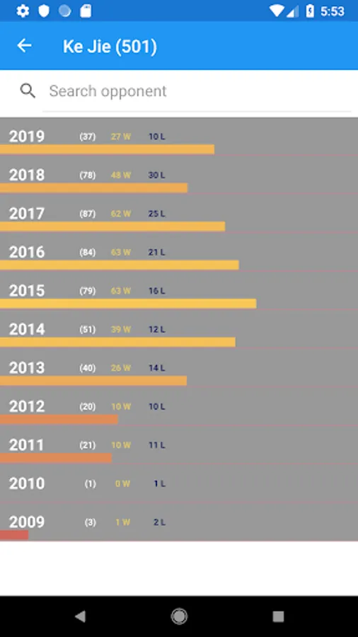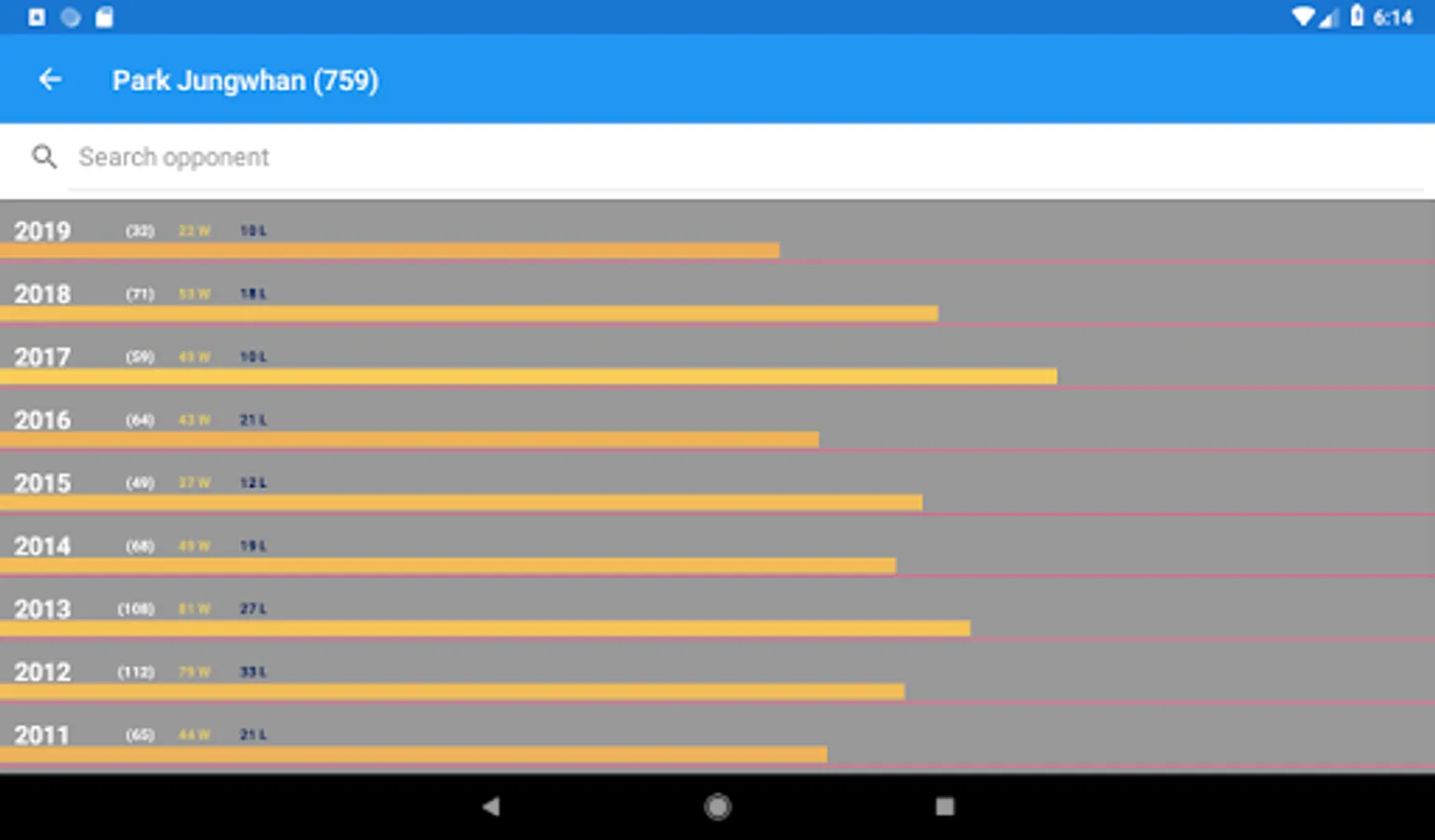* Search by opponent name is great for learning how two rivals grew together.
