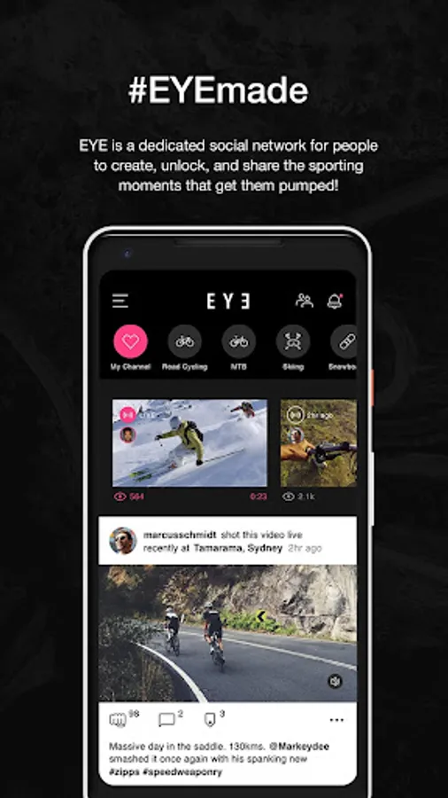 EYE is a social network created to share those personal sports moments that get you pumped.