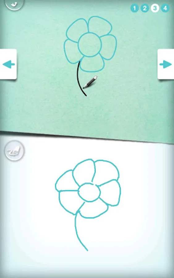 This application will teach your child to draw easily 4 (20 in the full version) different pictures like a butterfly, a flower...