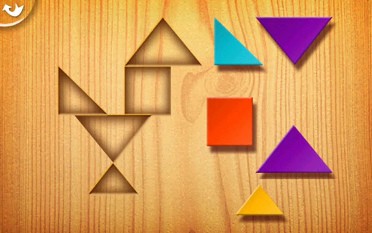 This game is an adaptation for kids of the famous Tangram game. Rules have been simplified (no rotation needed at all) to allow every kids to solve all the Tangrams.