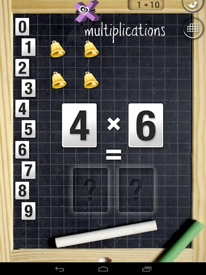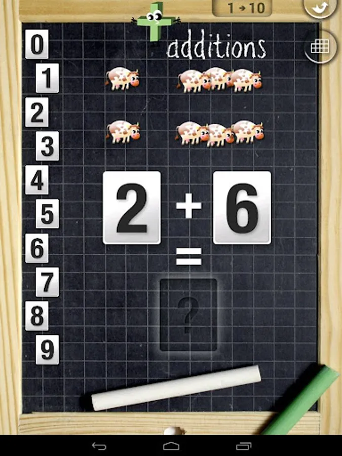 Kids from 4 to 10 will have fun learning additions, subtractions, multiplications and divisions tables (up to 10) with this game.