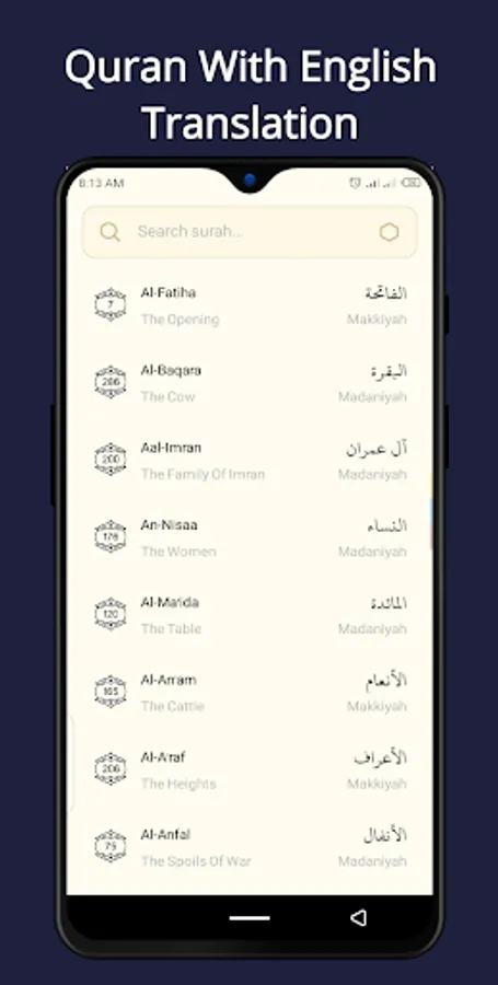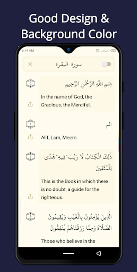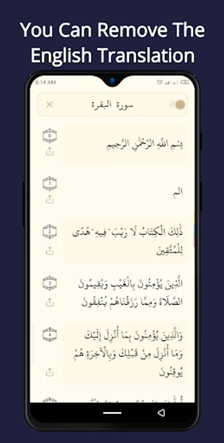 English Quran is a light and offline quran app that is very easy to use. English Quran app provides a feature that allows you to screenshot any quran verse and share it to any social media app if you wish.