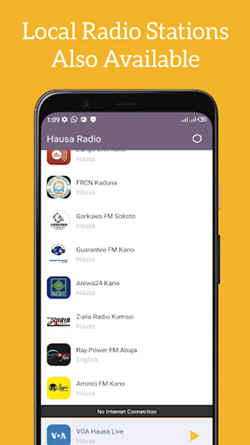 Hausa Radio Stations app zai baku damar sauraren gidajen radiyon Hausa na gida da na waje kyauta a duk inda kuke.