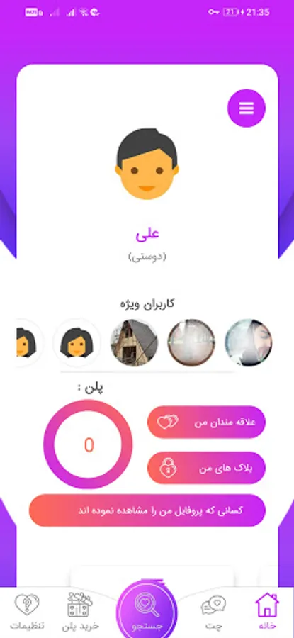 One of the most important factors for a happy life is having a cool and good friend, finding it can be a wish for many because it is very hard work, we at Arezoo social network have made it easy for you and you can easily among any users Search the city and connect and make friends with anyone who is well and happy.