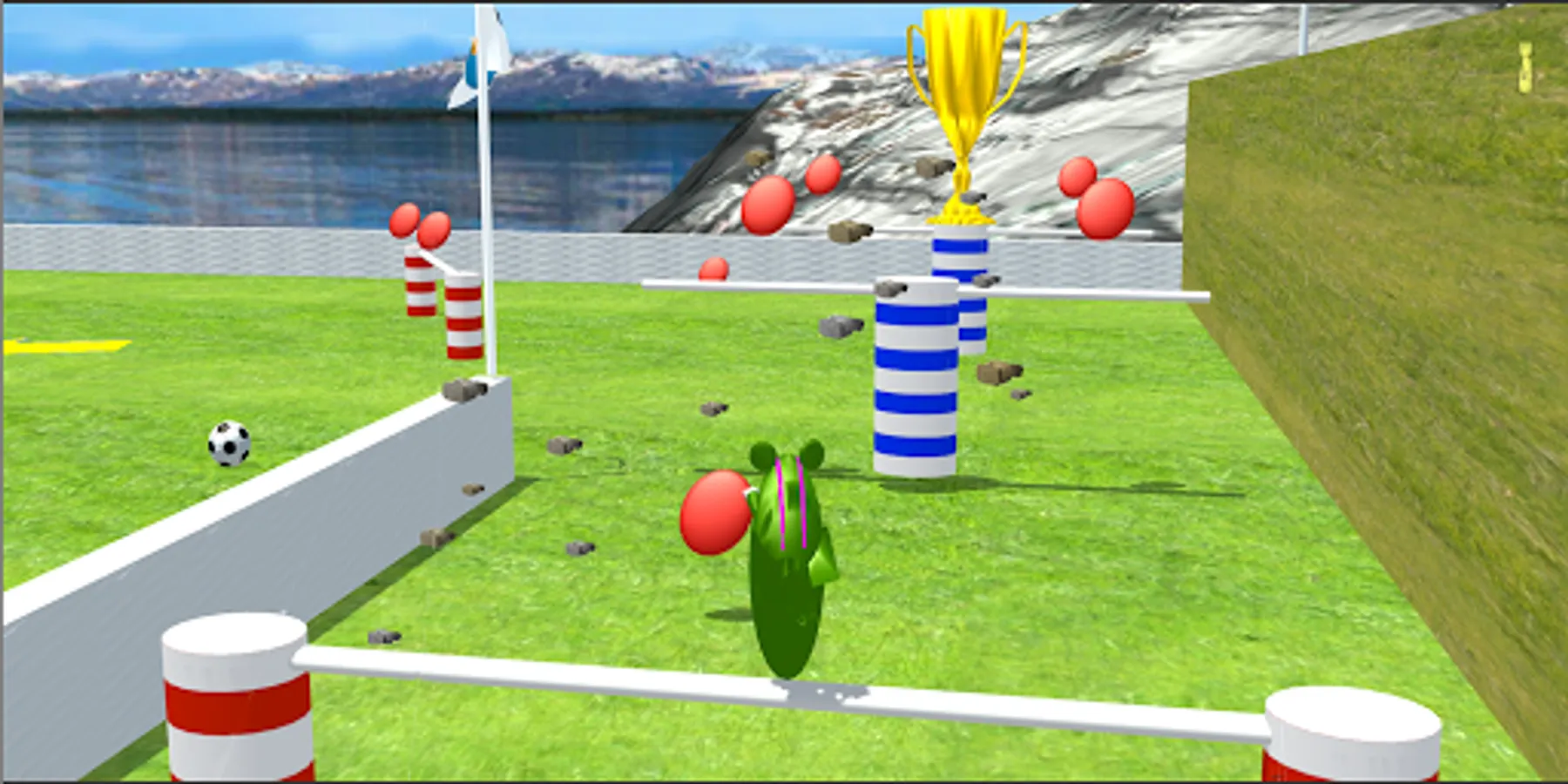 Get some exercise in the real world as you enter the virtual reality world. Jump from block to block, jump over obstacles, have fun on the trampolines in the playground area, or climb as high as you dare in the wooden climbing frame, and much more.