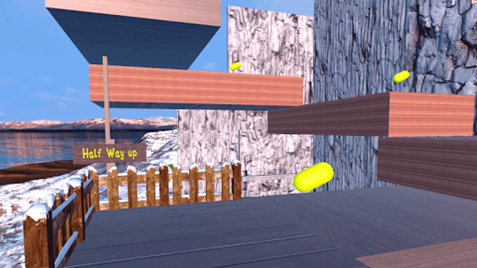 Jumping Jumping VR, first person 3D and 360 VR game. Obstacle race. Follow the track and catch floating things.