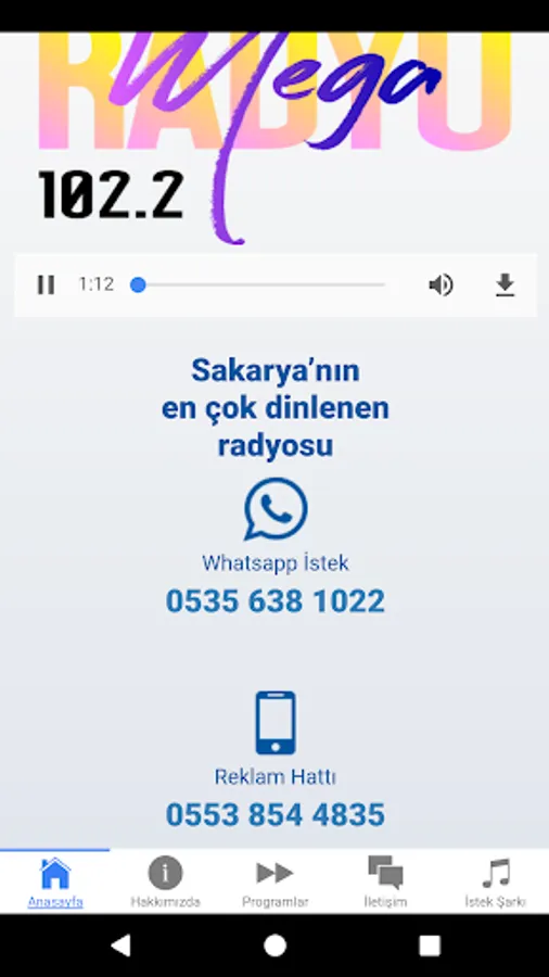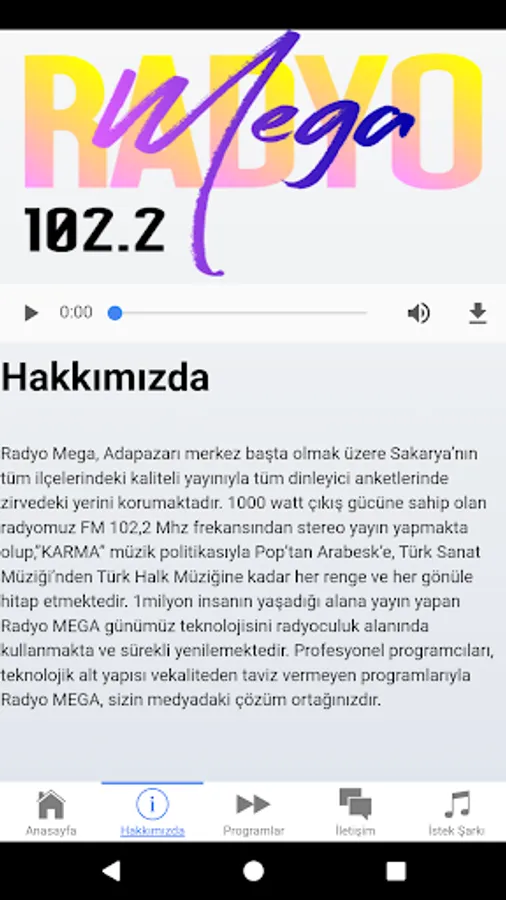 Radyo Mega maintains its top position in all audience surveys with its high quality publication in all districts of Sakarya including Adapazarı headquarters. With its 1000 watt output power, our radio broadcasts stereo from FM 102.2 Mhz frequency and addresses every color and every color from Pop to Arabesk, Turkish Art Music to Turkish Folk Music with ’KARMA’ music policy.