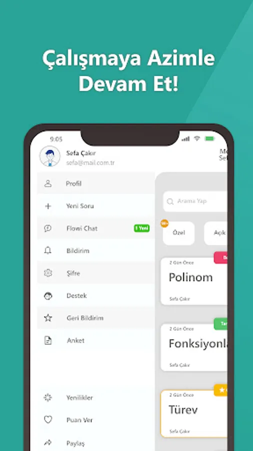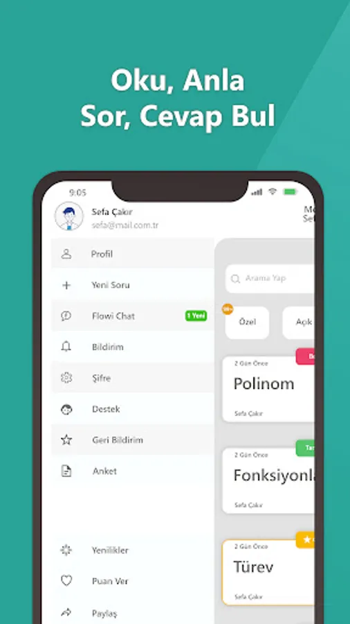 Students take pictures of the questions they cannot solve and add them to the application. The questions are forwarded to the branch teachers and the teachers can send the solution in different formats such as photo, text, audio, video.