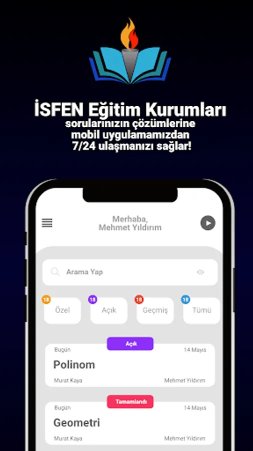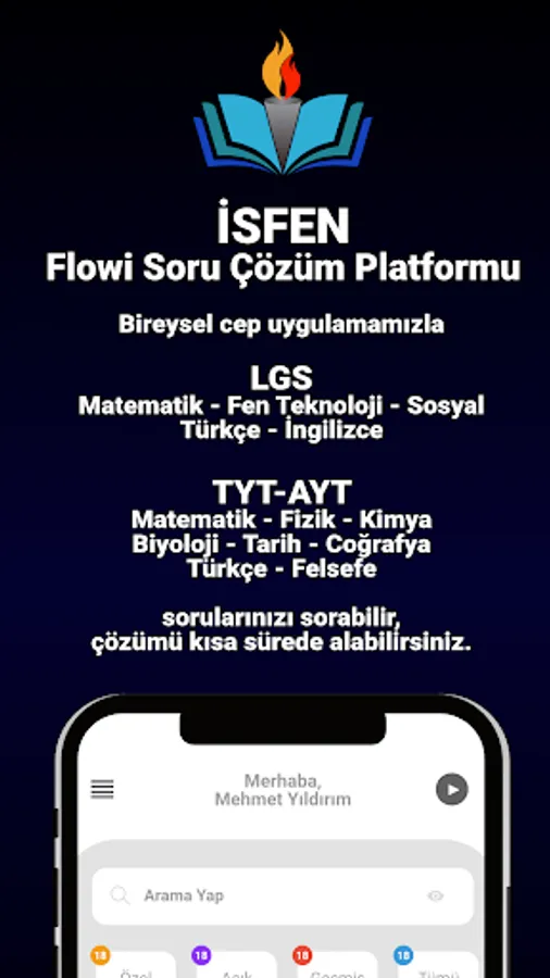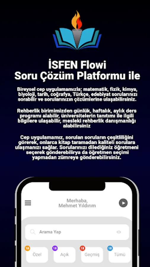 İSFEN Educational Institutions enables you to reach the solutions of your questions 24/7 from our mobile application. With our individual mobile application; you can ask your questions about mathematics, physics, chemistry, biology, history, geography, Turkish and literature and you can find solutions to your questions.