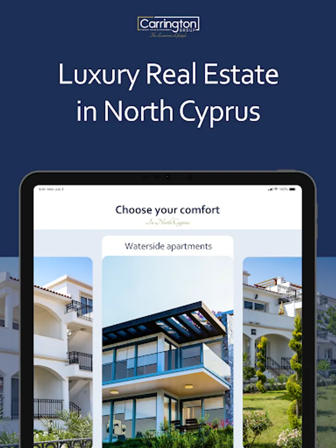 Carrington Group designs, builds, and sells luxury villas and apartments in North Cyprus. Most of the projects are located on the coastal area east of Kyrenia. Today, projects are being actively developed in downtown Kyrenia - you can see all houses for sale or rent by downloading this application.
