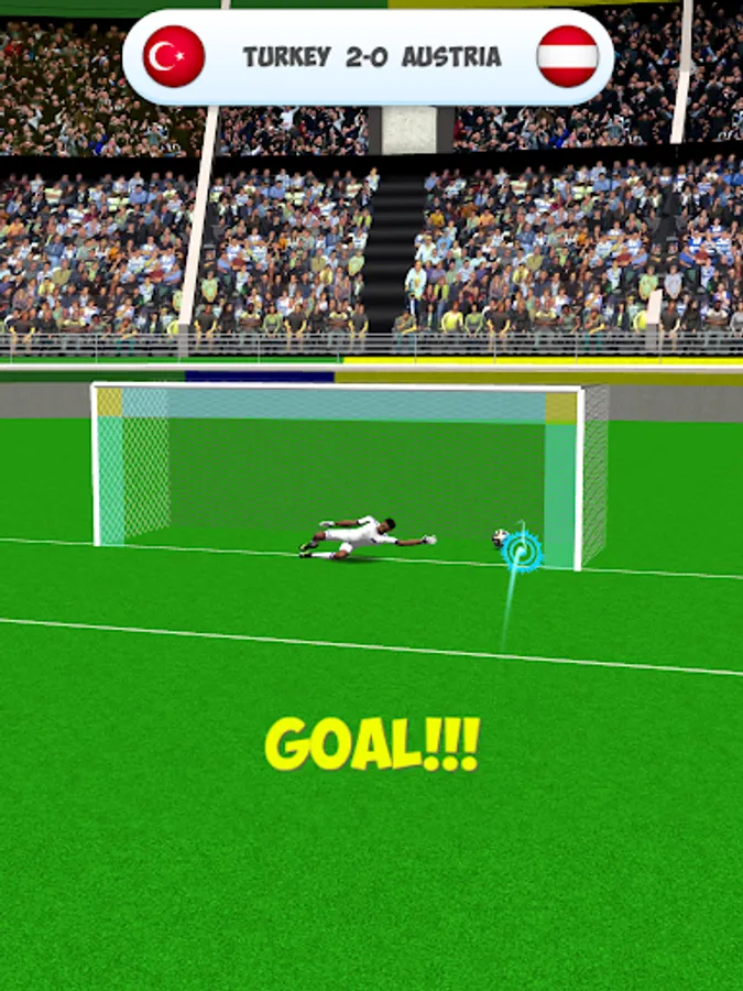 Swipe your finger to curve the ball and shoot. When your goalkeeper, move left or right for save the ball.