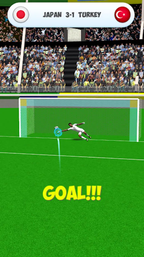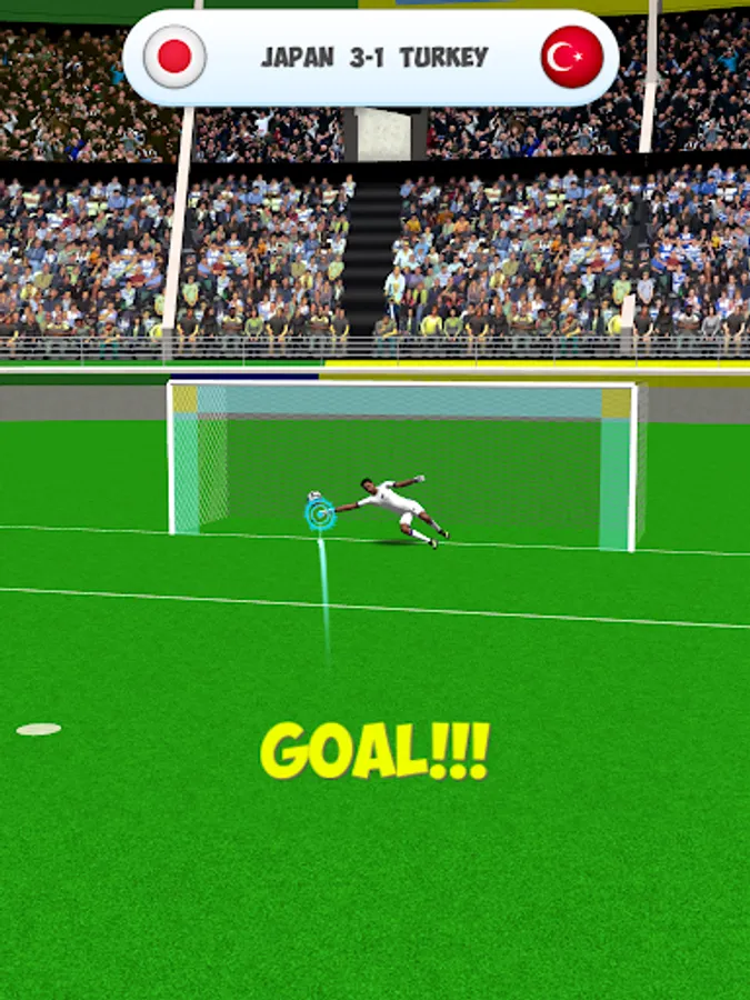 Swipe your finger to curve the ball and shoot. When your goalkeeper, move left or right for save the ball.