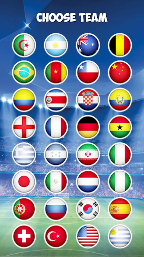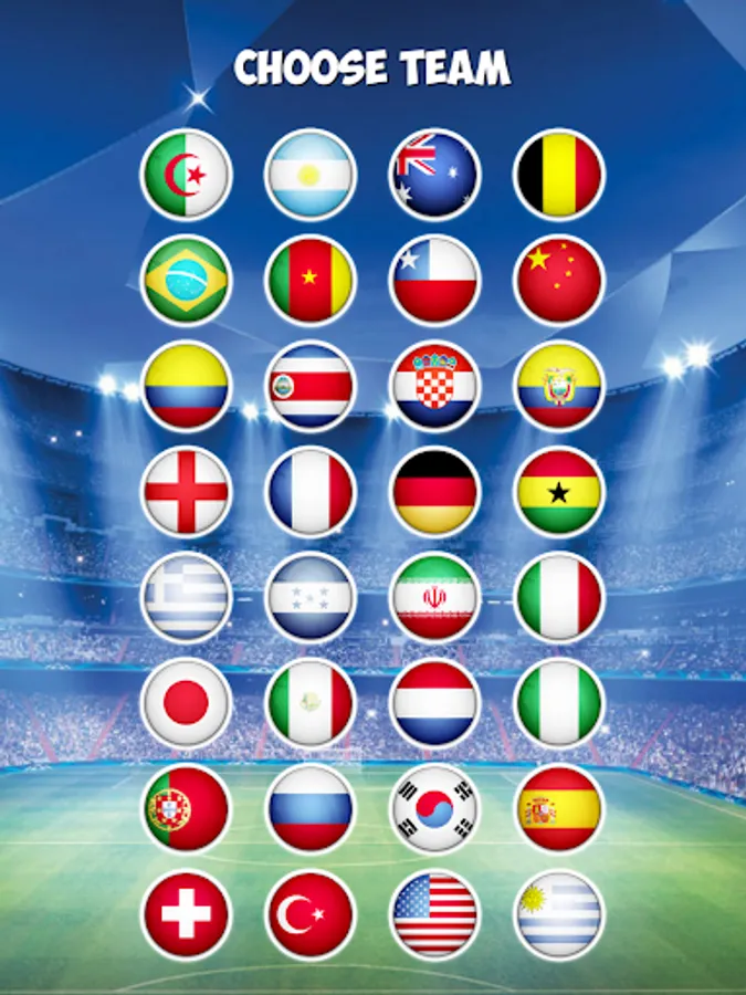 Choose your team from 32 national teams and win the world tournament.