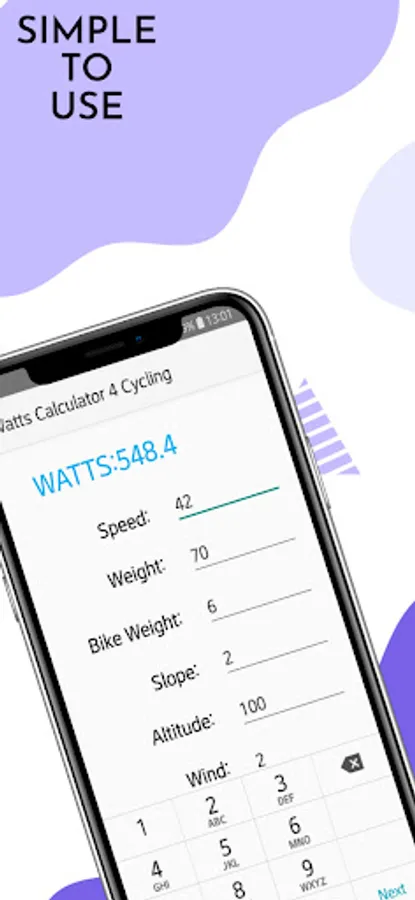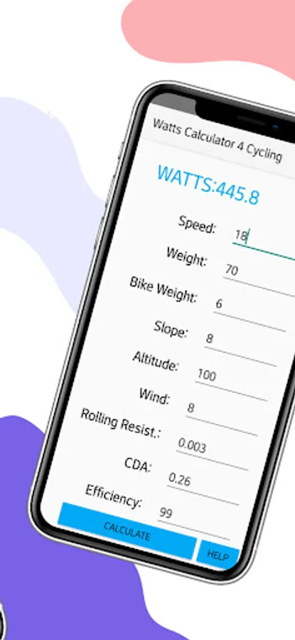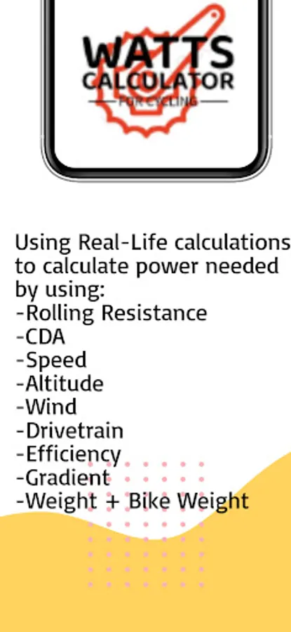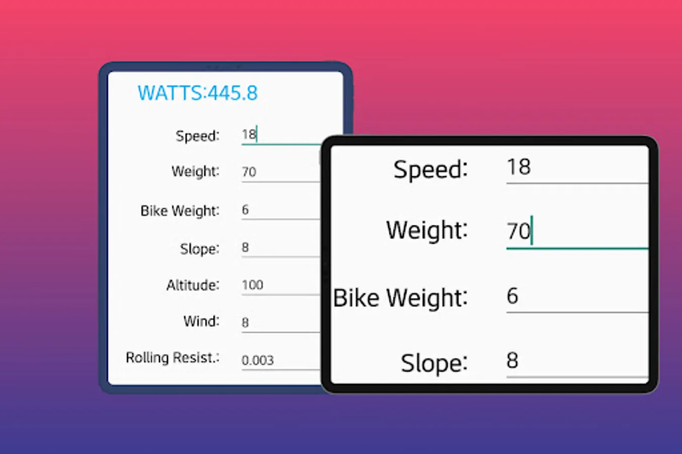Watts calculator 4 Cycling is a simple to use app that uses your very own personal user metrics to create a custom calculation in order to determine the average power required to travel a certain speed.