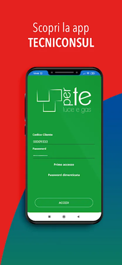 Access the Tecniconsul Energia app with the same credentials you use to enter the Customer Area of the website www.tecniconsulenergia.it or register directly from the application in a few steps.