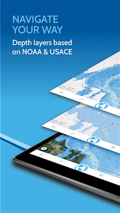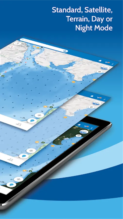 * Map Views – navigate using different map types (Standard, Satellite, Terrain, NOAA ENC) with auto, day or night modes