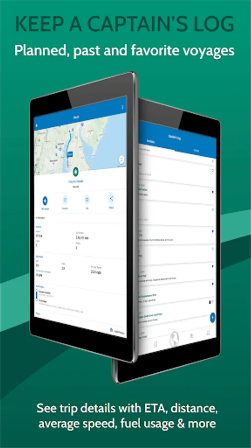 * Captain’s Log – save planned, past and favorite routes, tracks and voyages in a Captain’s Log with trip details