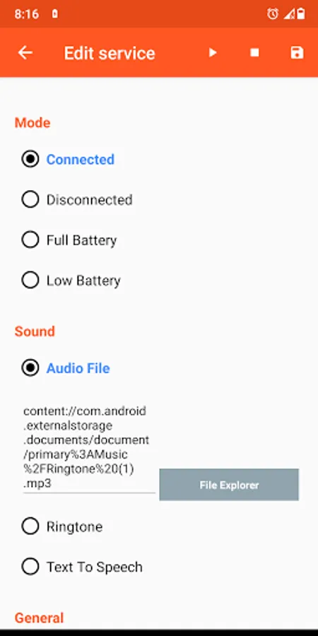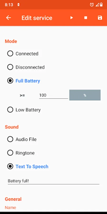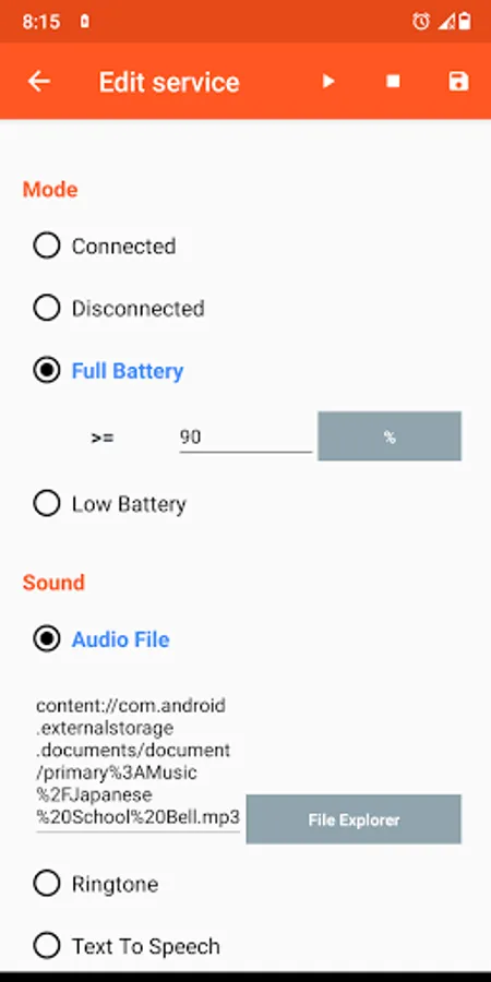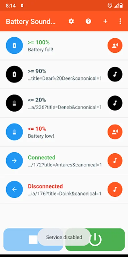 This app allows you to configure sound notifications based on battery status.