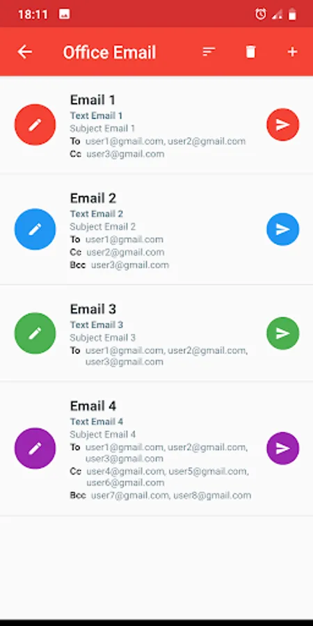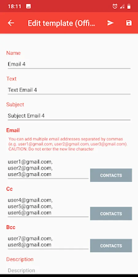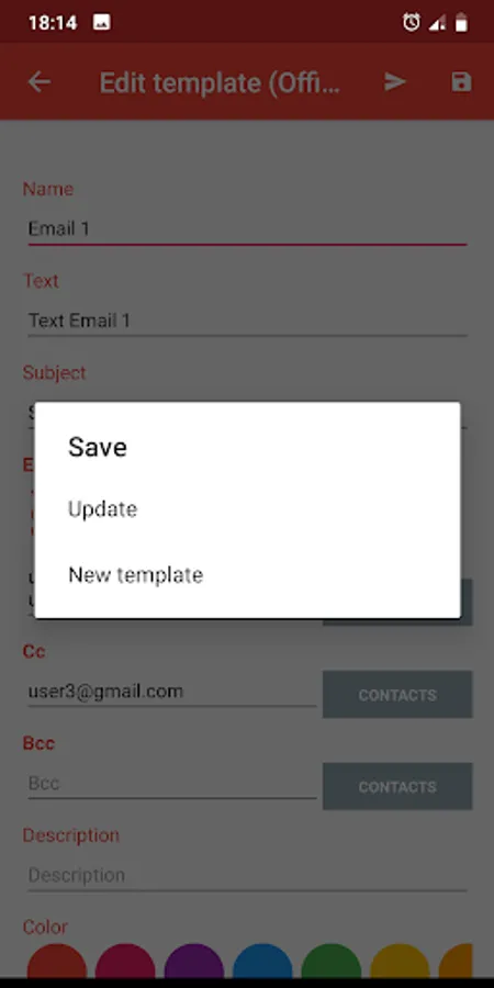 Create and save complete email templates with text and recipients, then send quickly with no typing.