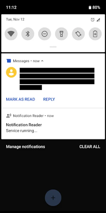 This app provides a system that can process and read notification texts.