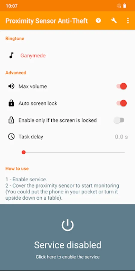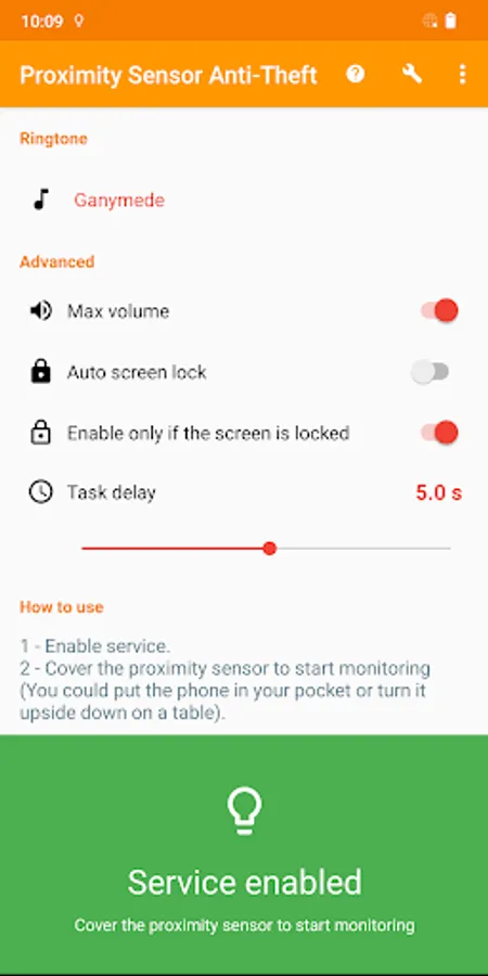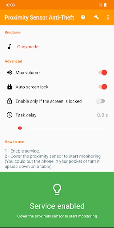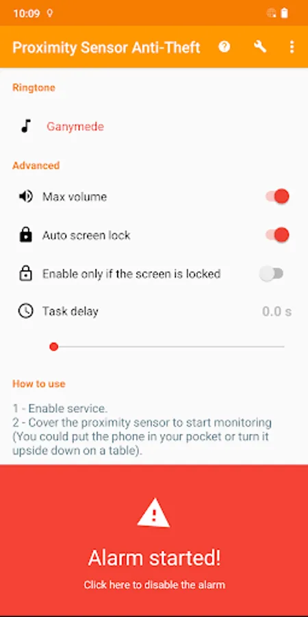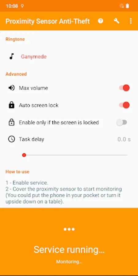 2 - Cover the proximity sensor to start monitoring (You could put the phone in your pocket or turn it upside down on a table).