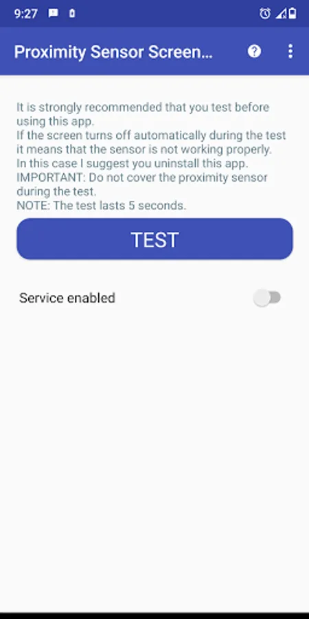 IMPORTANT: Do not cover the proximity sensor during the test.