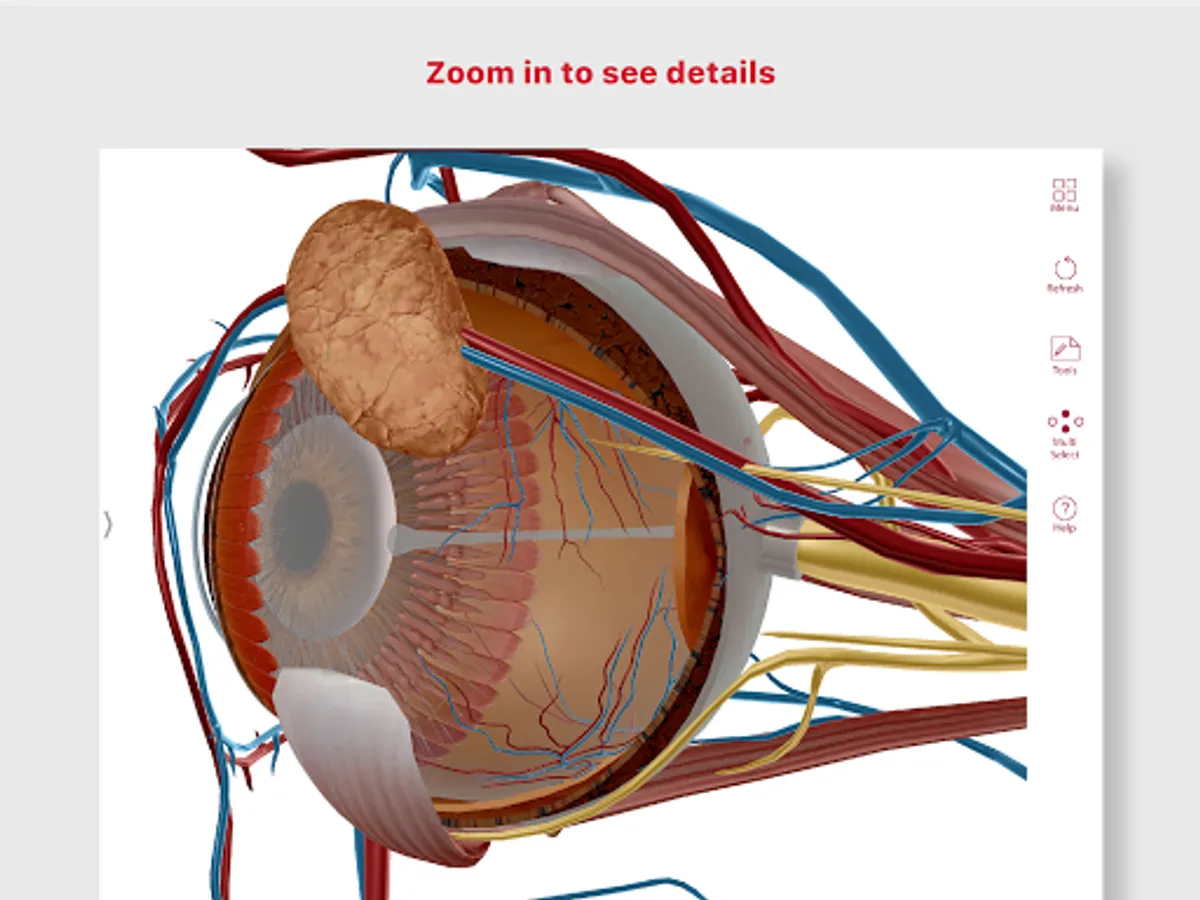 - Rotate to study the branches of the cranial nerves or the microanatomy of the eye from all perspectives.