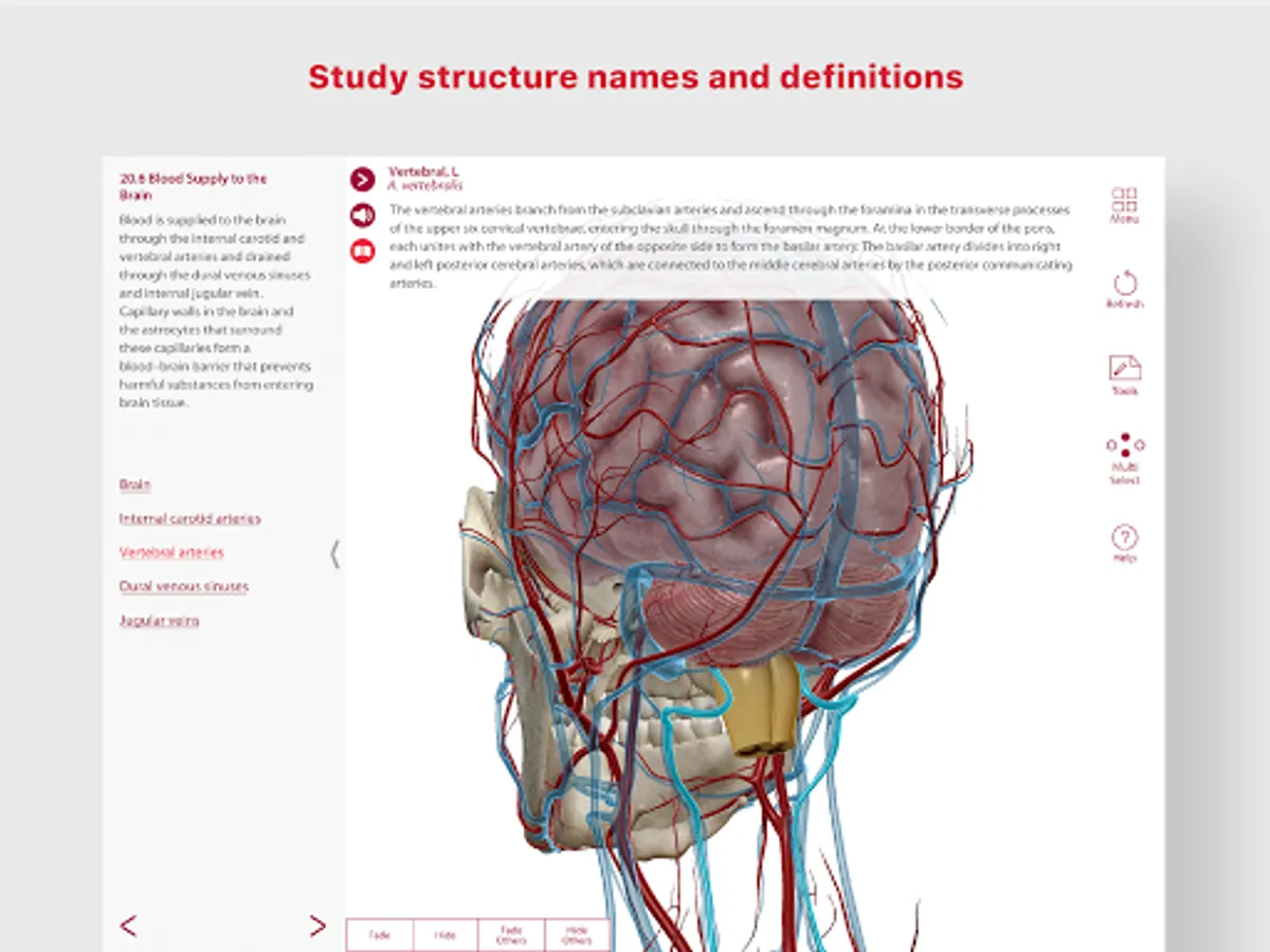 This app includes 12 units with 50 chapters/modules that use over 500 preset views of 3D models, more than 150 illustrations and animations, and hundreds of quiz questions.