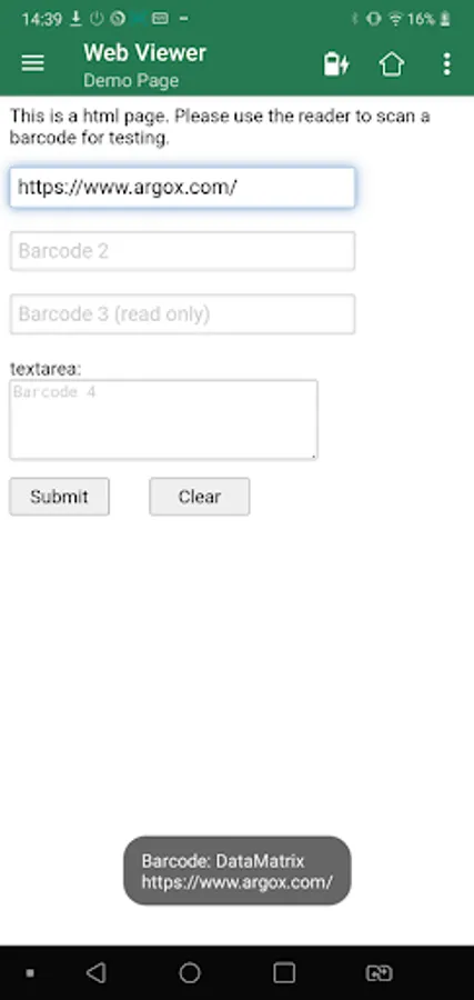 The app connects to the RA7120 via Bluetooth communication from a mobile device to demonstrate the operation of 1D/2D barcode scanning and control functions, and is suitable for demonstration, testing and application development reference.