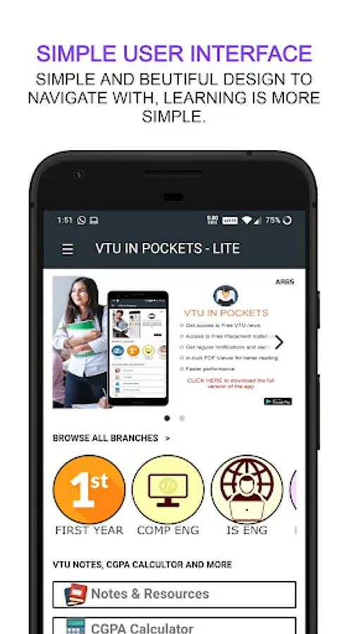 VTU in pockets LITE, an all in one app where students can get notes & resources.
